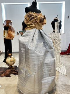 Auf Lysianes „Larmes“ folgte ein Reigen von Kreationen – eher Skulpturen als Kleider –, die altes, teils beschädigtes Flechtwerk veredelten. Stickereien, Spitzen, alte Posamente und Pompons trafen auf Ketten und Federn. Die Silhouetten wechselten zwischen körperbetonten Bustiers und fließenden Linien und vereinten die Strenge der Binsen mit Wachstuch, das Geflecht aus Stroh mit silbern schimmernder Folie. Aus geretteten Materialien entstanden Kleider mit Anklängen an die Belle Époque: eine Braut aus Weide und Baumwolle, eine kühne Figur im Bolero oder eine elegante Erscheinung, die man sich mühelos auf der Promenade des Anglais im Nizza der 1920er-Jahre vorstellen kann. Dieser schöpferische Reichtum, geboren aus Philippes Vorstellungskraft und seinem handwerklichen Können, war eine Hommage an die Kunst der Stuhlmacher und zeigte, wie selbst aus einfachsten Materialien etwas Kostbares entstehen kann.