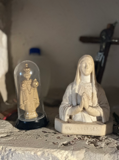 Drei Werke von Jacques Pasquier sind in der Kirche ausgestellt, darunter ein Christus am Kreuz hinter dem Altar. Die Wände tragen Spuren von Feuchtigkeit, an einer Stelle hat die Zeit den Putz durchbrochen, Spinnweben glitzern im Licht vor den Fenstern – und doch atmet alles hier noch den Geist der Erbauer: die Schöpfer eines Raumes ohne Prunk, voller Maß. Ein Raum, in dem der Mensch sich geborgen fühlt – wie in der Handfläche seines Schöpfers. Man verlässt ihn gestärkt, als hätte man für einen Moment die Qualen der Welt vergessen.