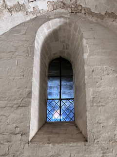 Drei Werke von Jacques Pasquier sind in der Kirche ausgestellt, darunter ein Christus am Kreuz hinter dem Altar. Die Wände tragen Spuren von Feuchtigkeit, an einer Stelle hat die Zeit den Putz durchbrochen, Spinnweben glitzern im Licht vor den Fenstern – und doch atmet alles hier noch den Geist der Erbauer: die Schöpfer eines Raumes ohne Prunk, voller Maß. Ein Raum, in dem der Mensch sich geborgen fühlt – wie in der Handfläche seines Schöpfers. Man verlässt ihn gestärkt, als hätte man für einen Moment die Qualen der Welt vergessen.