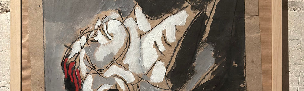 In diesem Jahr steht der Kreuzweg im Mittelpunkt – interpretiert von vier Künstlern: Sergio Ferro, Nicolas Alquin, Jacques Pasquier und Pierre Fichet. Gleich am Eingang empfängt die Besucher eine Kreuzigungsdarstellung: ein mächtiger Christus aus Eichenholz, das Haupt im Tode geneigt, dem Weltlichen abgewandt, verwundet an Leib und Seele. Er markiert den paradoxen Auftakt zum inneren Weg, den die Ausstellung eröffnet. Direkt dahinter hängt die erste Station von Sergio Ferro – Darstellungen körperlicher, gesichtsloser Qualen von besonderer Ausdruckskraft.