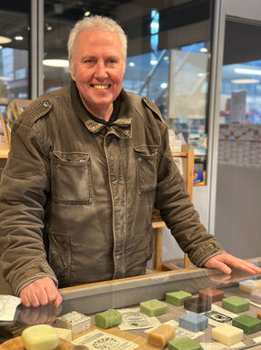 In diesem angenehmen Duftambiente erzählt mir Jean-Marc Vasseur, der Inhaber, die Geschichte seines Unternehmens. Ursprünglich deutete nichts darauf hin, dass dieser junge Sechziger, von Beruf Informatiker, eines Tages Seifenhersteller werden würde. Vor Jahren stellte Jean-Marc Beleuchtungs- und Elektroniksysteme für Karussells her. Sein Unternehmen war frankreichweit tätig. Doch 2015, erschöpft vom intensiven Arbeitstempo seines Unternehmens und frustriert darüber, dass seine Ideen immer wieder kopiert wurden, entschied er sich, die Firma zu schließen und einen radikalen Kurswechsel vorzunehmen. Bei einer beruflichen Veranstaltung fasste Jean-Marc den Entschluss, sich der Seifenproduktion zuzuwenden. Die Savonnerie des Hauts-de-France war geboren.
